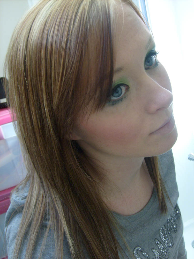 I'm one of the lucky ones who go naturally lighter in the summer! My hairs naturally blonde, so the high lights just pop out when I go out in the sun! Your hair looks fab! Love your green eye make up too!